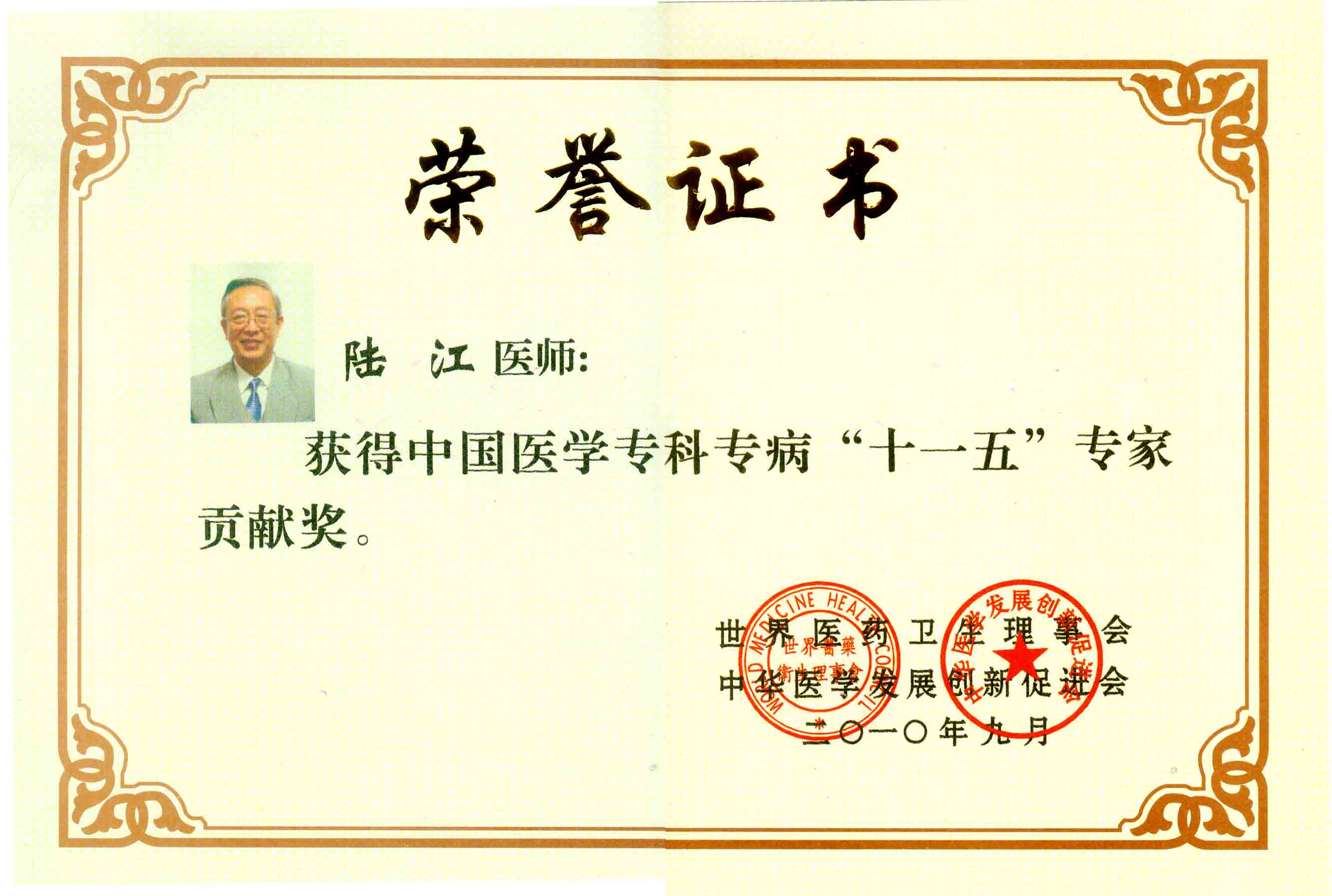 陸江獲得中國醫(yī)學(xué)專科專病優(yōu)秀專家恃別貢獻獎
